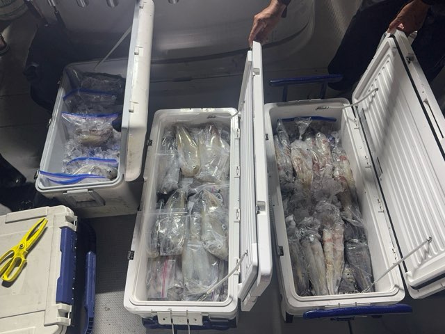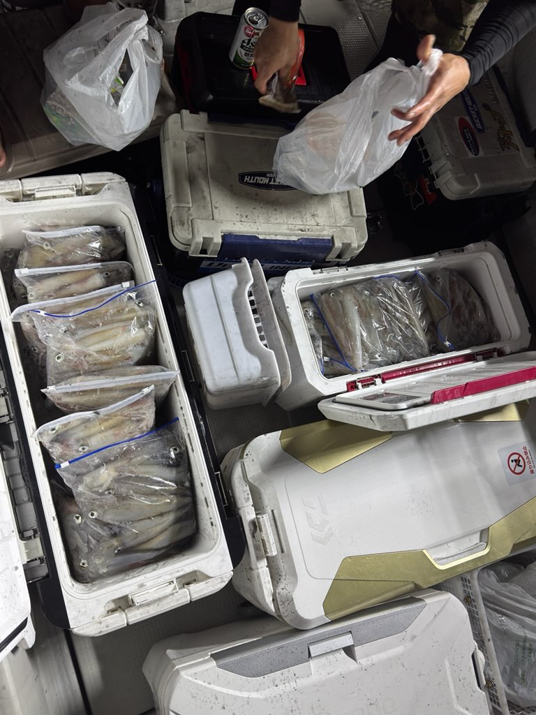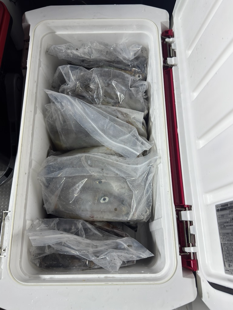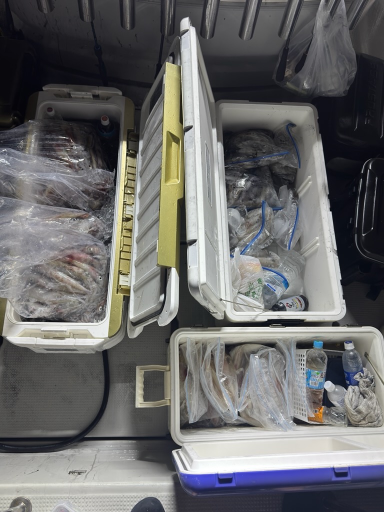 釣れ過ぎでした・・・笑 クーラーボックスの氷捨てないと入らない状況と