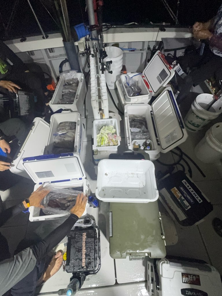 皆さまお勤め先の都合で遅め出船でしたが・・・20時竿振り開始で・・・なんと・・